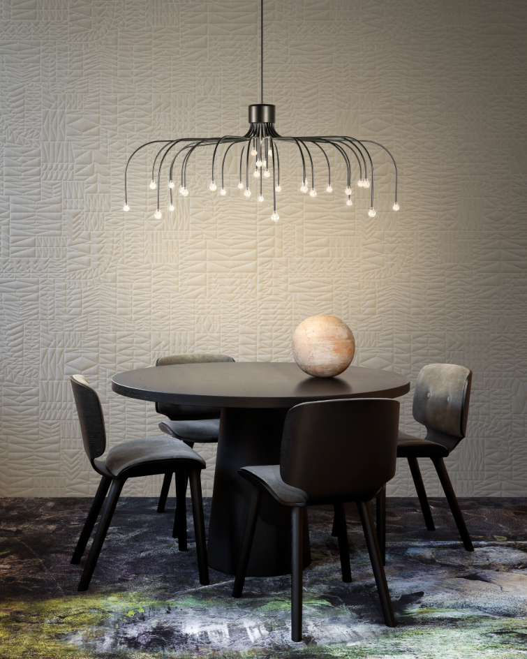 Vivez sous les étoiles avec la lampe Starfall Light de Front ! Grâce à cette toute nouvelle constellation, vous pouvez dormir ou dîner à la belle étoile chaque soir. Inspirée par la nature et issue de la science, la lampe Starfall Light est un lustre contemporain inversé qui vous offre cette sensation magique que l'on éprouve en contemplant le ciel étoilé.
