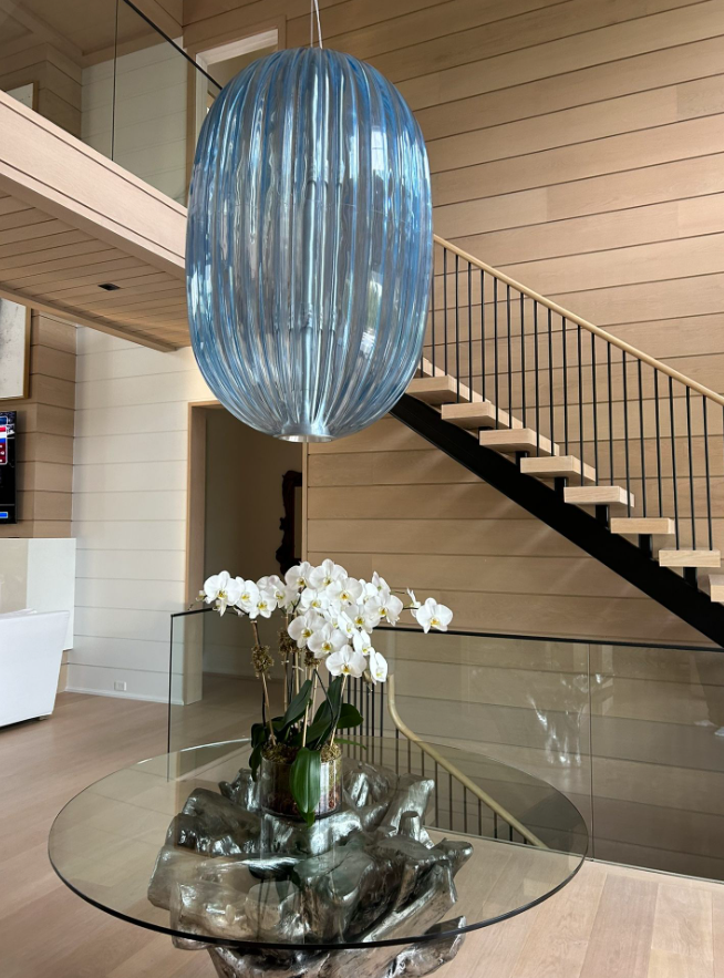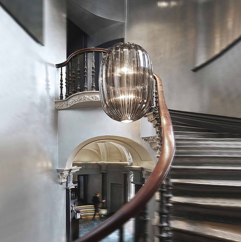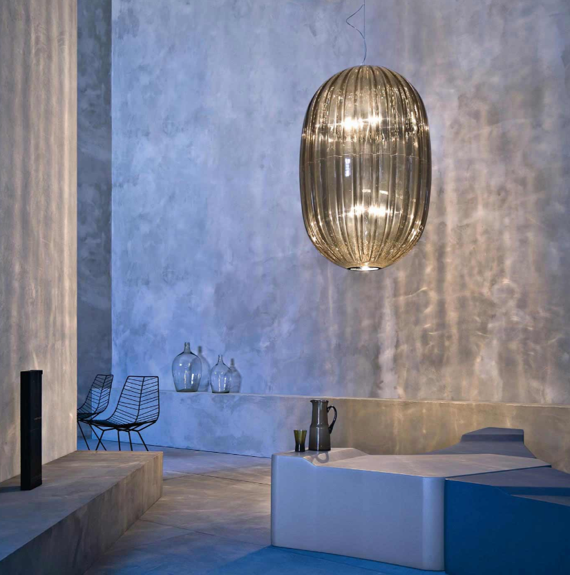 Une lampe suspendue inspirée de la forme et des couleurs des perles de verre vénitiennes traditionnelles, mais réalisée en polycarbonate transparent. La surface est caractérisée par de légères imperfections qui rappellent le verre artisanal et font vibrer la lumière. Deux tailles pour les projets de grande ou de petite envergure.
