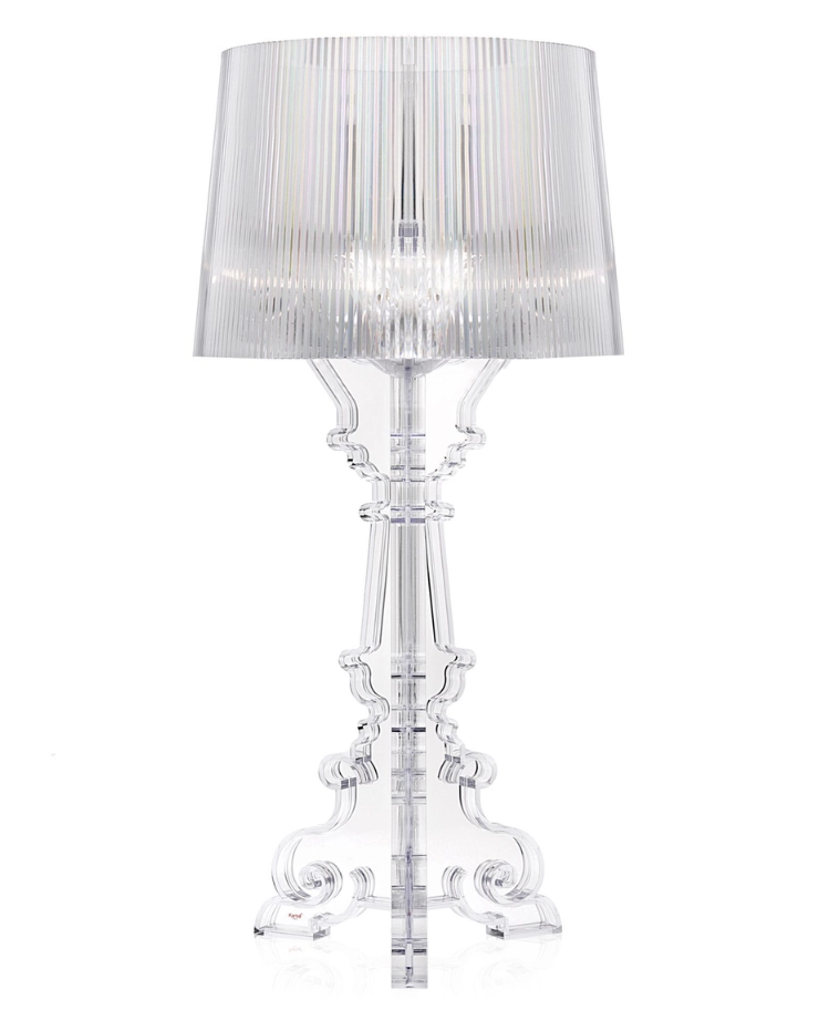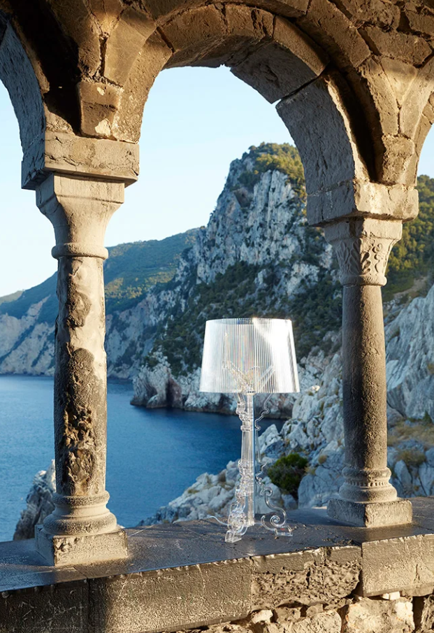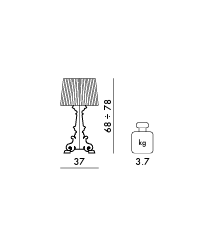 Bourgie allie classicisme, raffinement et tradition à l'innovation technologique. Le pied de style baroque se compose de trois éléments décorés qui s'emboîtent, tandis que le grand abat-jour, plissé, crée une multitude de reflets une fois allumés. Grâce à un système de suspension spécifique, trois hauteurs sont possibles : 68, 73 et 78 centimètres, pour s'adapter aux préférences de chacun et à l'usage prévu.