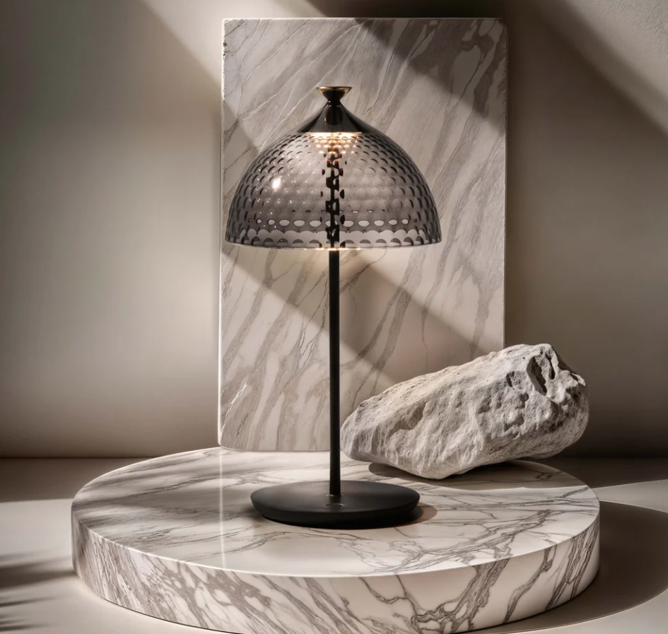 La lampe PUMO de Fabio Novembre est une interprétation originale du centre de table, inspirée de la forme du pumo traditionnel des Pouilles. Cette lampe offre un regard neuf sur la tradition, la fusionnant avec la modernité pour créer un mélange unique de style et de symbolisme. Elle a inscrit l'héritage culturel des Pouilles dans le monde contemporain, alliant fonctionnalité et esthétique. La lampe PuMO est fabriquée en PMMA recyclé et se décline en quatre coloris : Fumé/Noir, Azur/Bleu, Transparent/Blanc et Ambre/Brique.