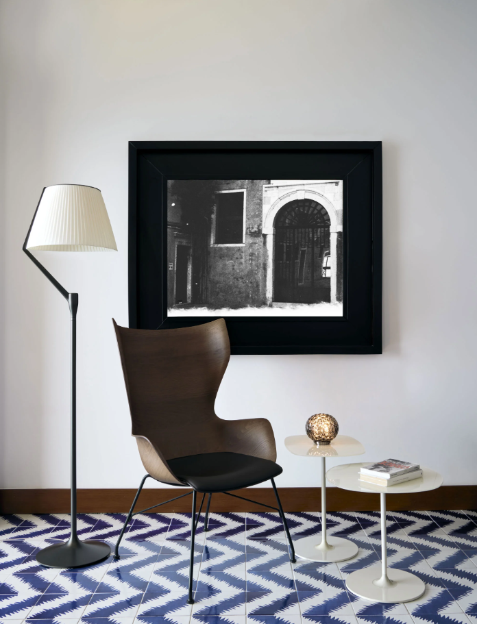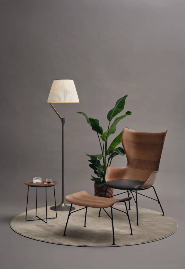 Une lumière généreuse, diffusée et appréciée dans l'espace. ANGELO STONE, la lampe de Philippe Starck, révolutionne l'agencement ampoule/abat-jour : la source lumineuse n'est pas située au-dessus, mais provient d'une LED placée sur la tige qui éclaire le capuchon, point de départ d'un jeu de reflets créé par des lentilles de haute technologie. Grâce à son abat-jour monobloc moulé en polycarbonate écologique, la lumière est diffusée de manière encore plus homogène. ANGELO STONE est disponible en version lampe de table et lampadaire, et en trois finitions : champagne, cuivre et titane.