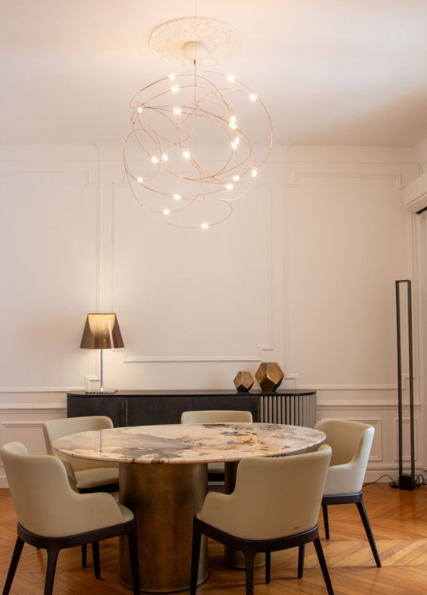 Fils en bronze, coupelles en laiton avec diffuseurs en polycarbonate semi-transparent