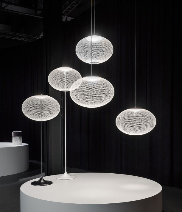 NR2 de Bertjan Pot est une bulle élégante et lumineuse composée de fils blancs ou noirs. Son motif en treillis crée une fine toile qui brille et scintille sous la lumière. Cette toile ovale porte la signature de Bertjan Pot : des créations nées de l’expérimentation avec différents matériaux. La lampe LED intégrée à NR2 diffuse subtilement une douce lueur magique dans la pièce. NR2 est disponible en deux coloris…