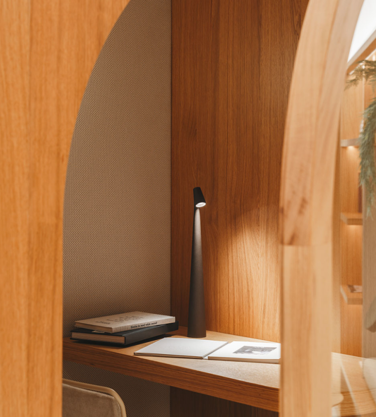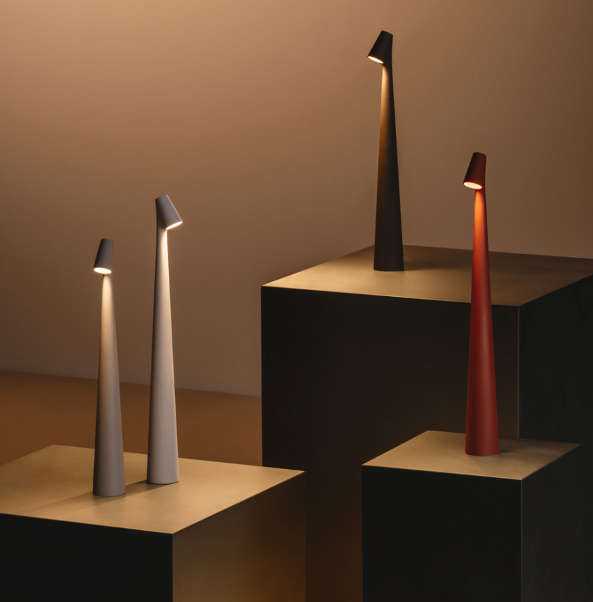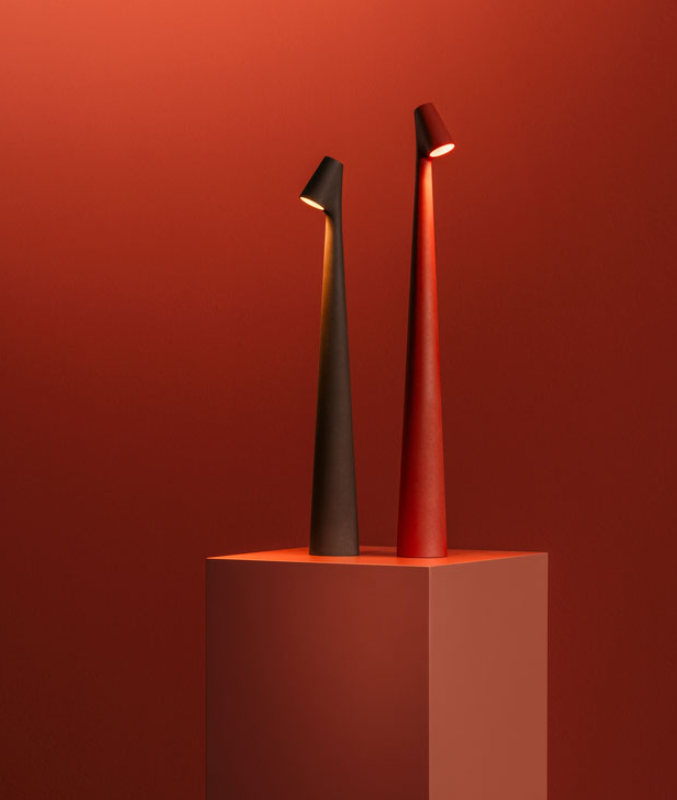 Cette lampe au pied conique élancé terminé par une tête élégante invite à tendre la main pour s’en saisir. Disponible en deux dimensions, la lampe de table portable Africa présente une texture mate laquée, disponible en quatre finitions aux tons naturels qui apportent chaleur et présence au design. Sa source LED rechargeable permet trois niveaux d’intensité, réglables par une simple touche placée sur la tête de la lampe.