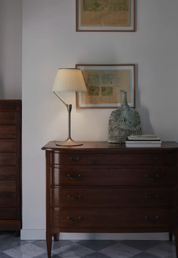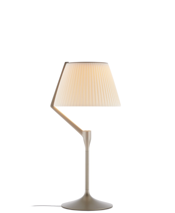 Une lumière généreuse, diffusée et appréciée dans l'espace. La version finale d'ANGELO STONE, la lampe de Philippe Starck qui révolutionne l'agencement ampoule/abat-jour, arrive en boutique : la source lumineuse n'est plus zénithale, mais une LED placée sur la tige qui éclaire le capuchon, point de départ d'un jeu de reflets créé par des lentilles high-tech. Grâce à son abat-jour monobloc moulé en polycarbonate écologique, la lumière est diffusée de façon encore plus homogène. ANGELO STONE est disponible en version lampe de table et lampadaire, et en trois finitions : champagne, cuivre et titane.